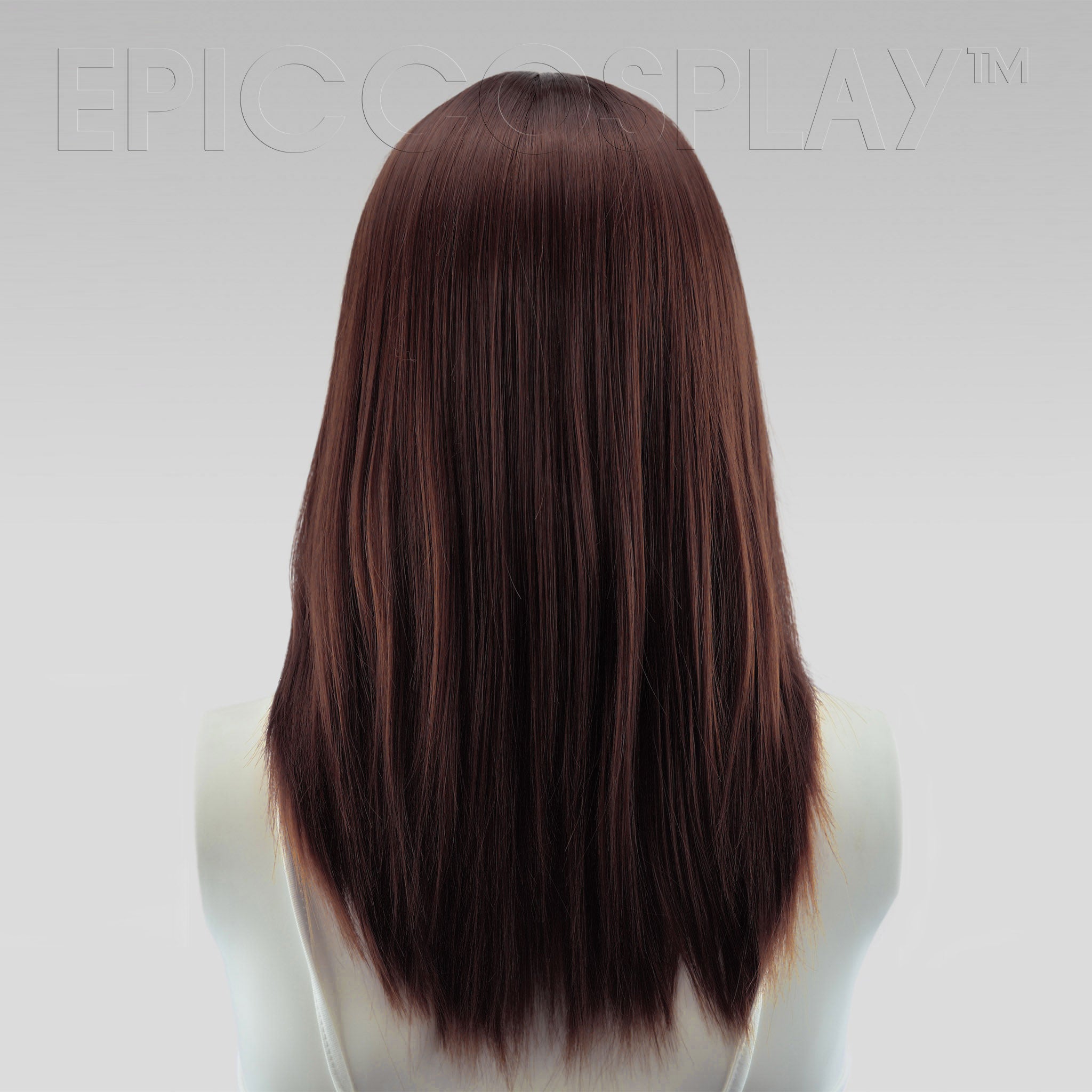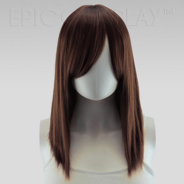 Our Theia is a straight and very versatile style perfect for cosplay, costuming, or even casual daily wear. This Medium Brown medium wig reaches an overall length of 20", making it fall slightly past the shoulders on most wearers. With 7" bangs, a variety of styles can be achieved by trimming the fiber or simply using pins to create a cute side swept appearance. A 4" by 5.5" half circle skintop at the crown of this Medium Brown medium wig gives it an incredibly natural looking hairline, and gives many options for parting and styling.